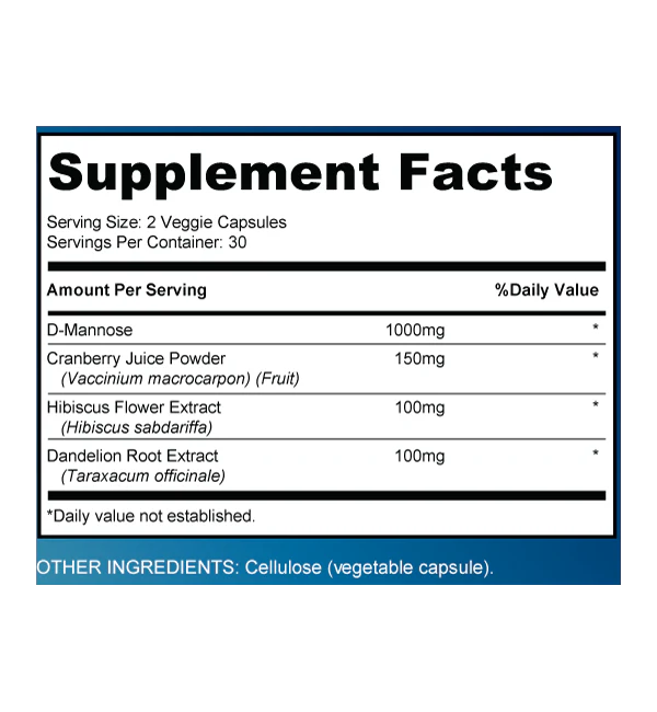 • 🌿 Powerful Natural Formula — Combines D-Mannose, Cranberry Juice Powder, Hibiscus Flower Extract, and Dandelion Root for comprehensive bladder support.