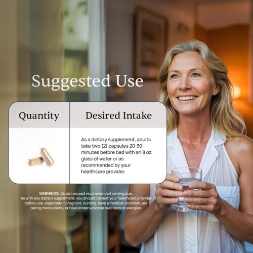 Take two (2) capsules 20-30 minutes before bed with an 8 oz. glass of water or as recommended by your healthcare provider.