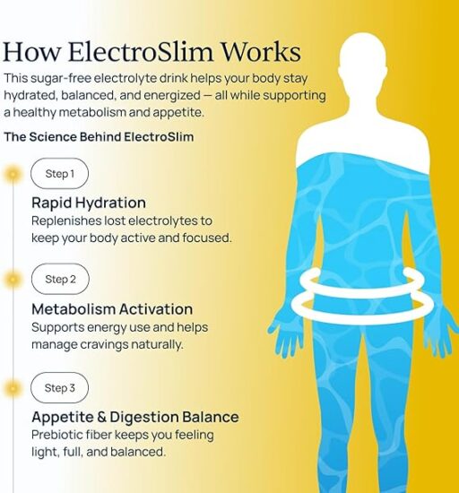 ElectroSlim is an electrolyte powder full of essential minerals that give an electric charge to your metabolism and force your body to burn fat as energy.